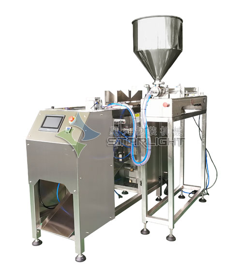 該機(jī)包裝范圍廣泛,通過(guò)選擇不同的計(jì)量器,可以適用于液體、醬體、顆粒、粉末、不規(guī)則塊狀物等物料的包裝,且使用的是預(yù)制好的包裝袋,對(duì)于多層復(fù)合膜、二氧化硅、鋁箔、單層PE、PP等材料制成的預(yù)制袋、紙袋均可應(yīng)用。