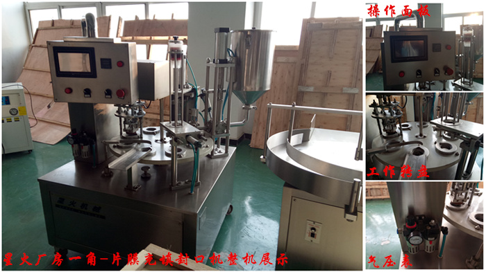 片膜充填封口機(jī)適用于米酒、果汁、豆奶、果凍、牛奶、冰淇淋、休閑食品等食品飲料的杯狀(盒狀)自動灌裝封蓋。