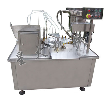 本機專業(yè)為10-20ML的口服液灌裝封口而設計,是口服液灌裝生產(chǎn)線中的灌裝主機,主要用于易拉直管瓶的灌裝、上蓋、封口。采用四頭跟蹤式注射泵灌裝,電磁振動自動送蓋,三刀離心式軋蓋(或旋蓋),具有無瓶不灌裝的功能。該機灌裝和封口合二為一,設計先進,結構緊湊,易于操作與維護,完全符合GMP標準。