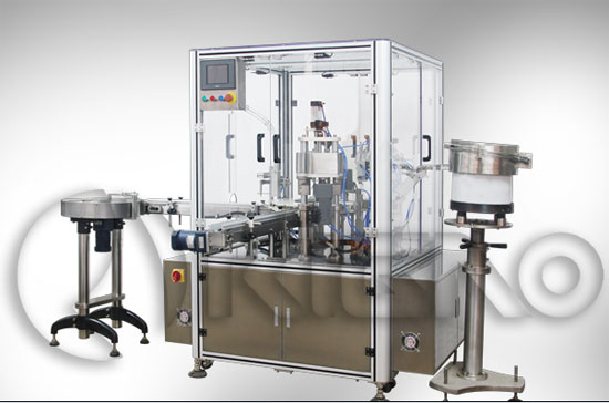 指甲油灌裝壓塞旋蓋聯(lián)動機視頻展示: