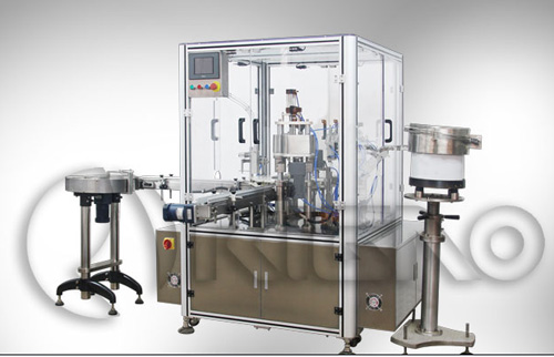 乳液灌裝旋蓋聯(lián)動一體機(jī)具有理瓶,瓶自動檢測(有瓶灌裝,無瓶不灌裝,有瓶落蓋,無瓶不落蓋),自動灌裝,自動落外蓋,自動旋蓋、不合格品自動剔除等功能,并配有潔凈層流罩,確保機(jī)器區(qū)域內(nèi)空氣潔凈度。該機(jī)完全符合GMP藥品生產(chǎn)規(guī)范。