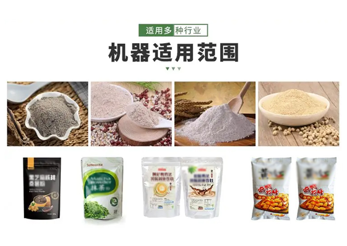 全自動旋轉(zhuǎn)式給袋包裝機(jī)適用于洗衣粉、調(diào)料粉、皂粉、淀粉、奶粉、食品添加劑、泡打粉、小蘇打粉、燒烤料、水產(chǎn)飼料、獸藥魚藥、足浴粉、面膜粉、浴鹽、葡萄糖粉、咖啡粉、糖粉、米粉、玉米粉、面包糠、鹵肉粉、增稠劑、香精香料、糖、甜味劑、木糖醇粉、抹茶粉、黑芝麻粉、胡椒粉、代餐粉等眾多粉末以及細(xì)微粉粒類物料均可包裝。