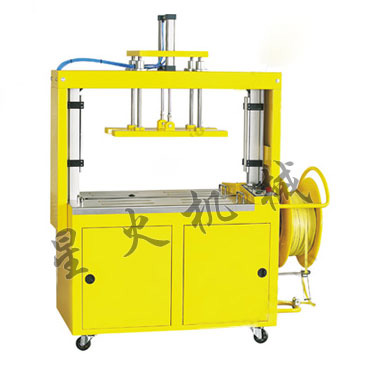 工作原理:打包物體基本處理機(jī)器中間,首先右頂體上升,壓緊帶的前端,把帶子收緊捆在物體上,隨后左頂體上升,壓緊下層帶子的適當(dāng)位置,加熱片伸進(jìn)兩帶子中間,中頂?shù)渡仙,切斷帶子,很后把下一下捆扎帶子送到位,完成一個(gè)工作循環(huán)。