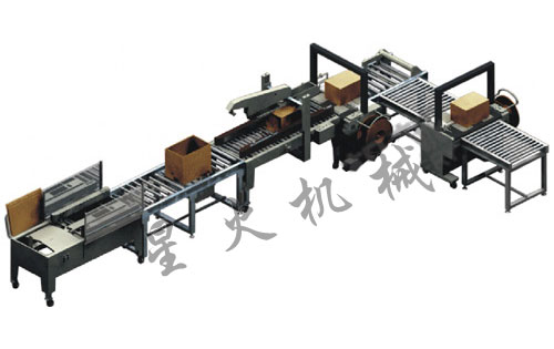 適用于紙箱規(guī)格變化不太頻繁的場合,自動完成上、下中縫的自動封箱和“ # ”字捆扎。有連續(xù)封底、自動折蓋封箱及“ # ”字或多道捆扎包裝的功能。可方便的通過人工調(diào)整適應紙箱大小變化。