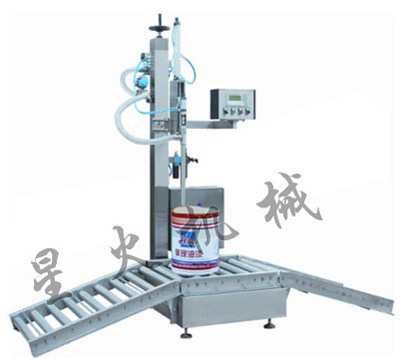 CJ-200B型半自動稱重式液體灌裝機,原理是由稱重傳感平臺在微電腦程序控制下設(shè)定計量。灌裝時先去除皮重。物料在注入容器時先大量快速進料后慢速小計量修正計量。操作者只需講容器防入平臺、口對下料嘴,此時程序啟動,下料嘴下降,打開灌裝閥進料,當達到設(shè)定量時自動停止補料,下料嘴上升,完成灌裝過程。