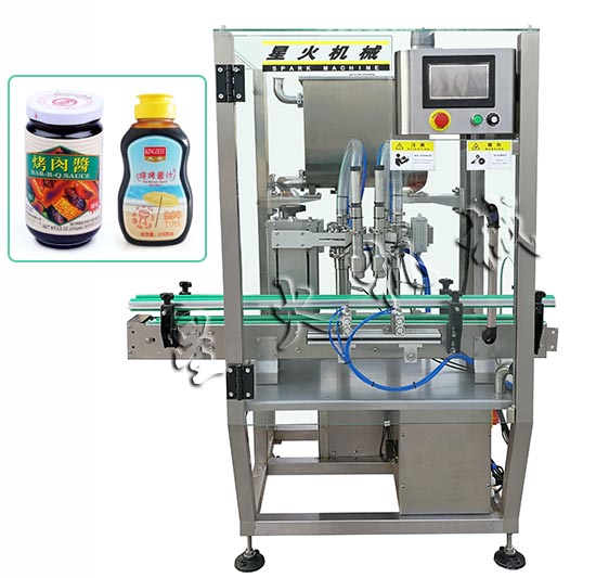 烤肉醬灌裝機(jī)廣泛適用于含顆粒的醬料/半流體、膏體,如:燒烤醬、烤肉醬、排骨調(diào)味醬、香菇醬、辣椒醬、調(diào)味醬、牛肉醬、柱候調(diào)味醬、番茄醬、沙拉醬、叉燒醬、夾饃醬、麻辣醬、鹵肉醬、黑椒醬、豆豉醬、甜面醬、蒜蓉醬、拌飯醬等;全自動烤肉醬灌裝機(jī)更換灌裝閥(即變成多頭濃醬全自動灌裝機(jī)),還可灌裝各種液體、粘稠體、膏體的灌裝等。