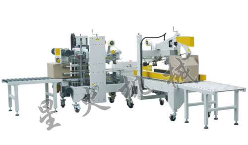 ④適用多種紙箱自動折蓋工字型封箱,紙箱上下四個角邊同時自動封口、撫平,快速、平穩(wěn),也可與自動化包裝流水線配套使用。