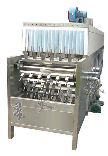 空玻璃瓶經(jīng)手工放置到輸送帶卡座上后,經(jīng)輸送帶送到?jīng)_淋區(qū)進行1次、2次噴淋沖洗,同時進行外瓶沖洗,然后進入烘干區(qū)進行烘干滅菌,送至翻瓶區(qū)后自動翻轉(zhuǎn)落至理瓶機上,經(jīng)灌裝輸送帶,轉(zhuǎn)至下道灌裝等程序。