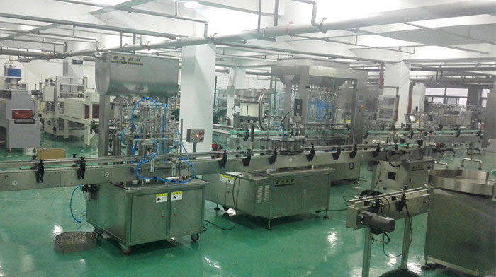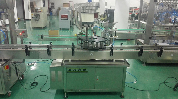 由四頭灌裝機(jī)的料桶倒入橄欖油,該機(jī)完成四頭同時(shí)瓶的灌裝,完成后的瓶子進(jìn)入下一工序,由自動(dòng)旋蓋機(jī)對(duì)瓶子進(jìn)行上蓋、鎖蓋工作,完成后流入下一工序,由自動(dòng)圓瓶貼標(biāo)機(jī)對(duì)瓶子進(jìn)行貼標(biāo),到此整個(gè)生產(chǎn)工序完成。橄欖油自動(dòng)灌裝鎖蓋貼標(biāo)生產(chǎn)線星火廠區(qū)實(shí)地展示: