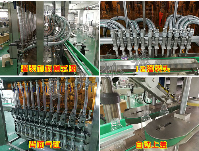 1、采用活塞式12頭伸入灌裝形式,灌裝不泄露;