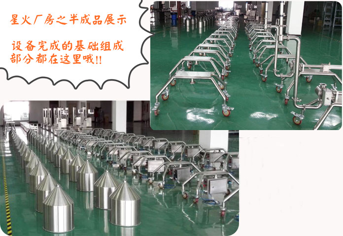 每一個設備的完成都是由一個一個的半成品組合形成的,半成品更是一個完整設備的很初的形態(tài),可以說半成品是很能看出設備優(yōu)質(zhì)的。下圖為星火顆粒醬類包裝機廠房半成品區(qū)的展示。
